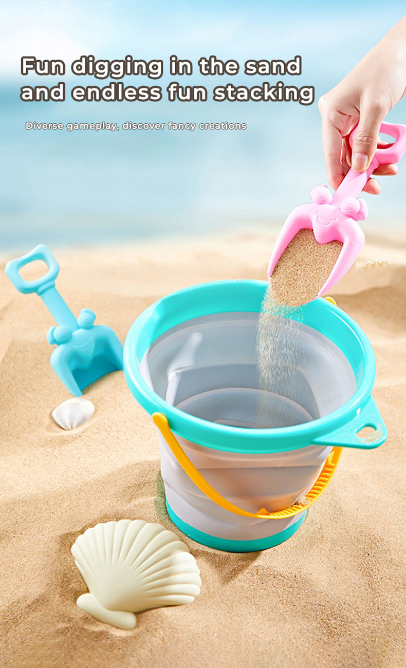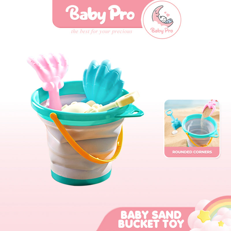 Baby Pro Kids Sand Bucket Toys Collapsible Silicone Pail With Scoop